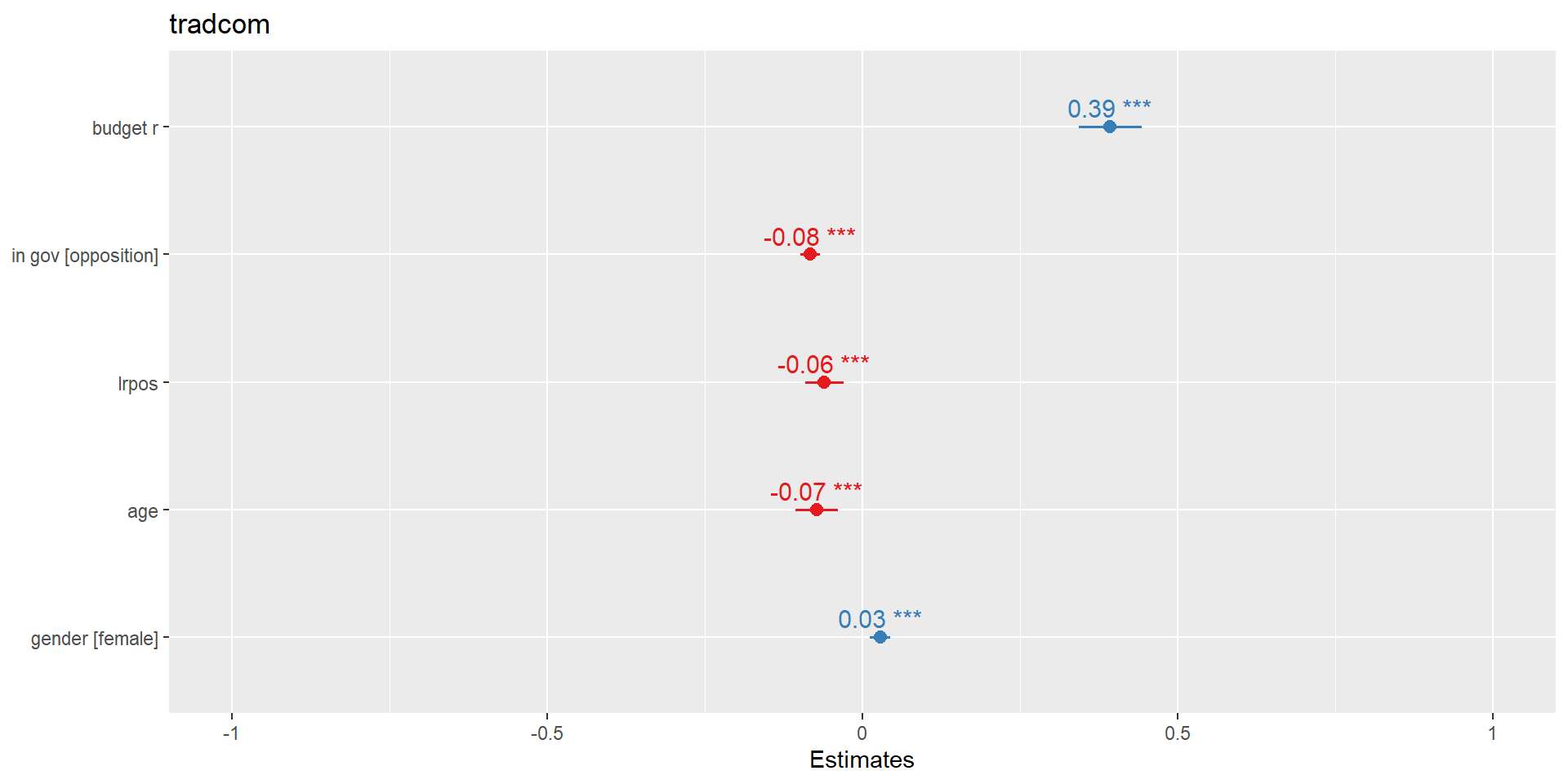 In addition, we control for the effect of positioning on the left-right axis, as well as age and gender of the candidates.