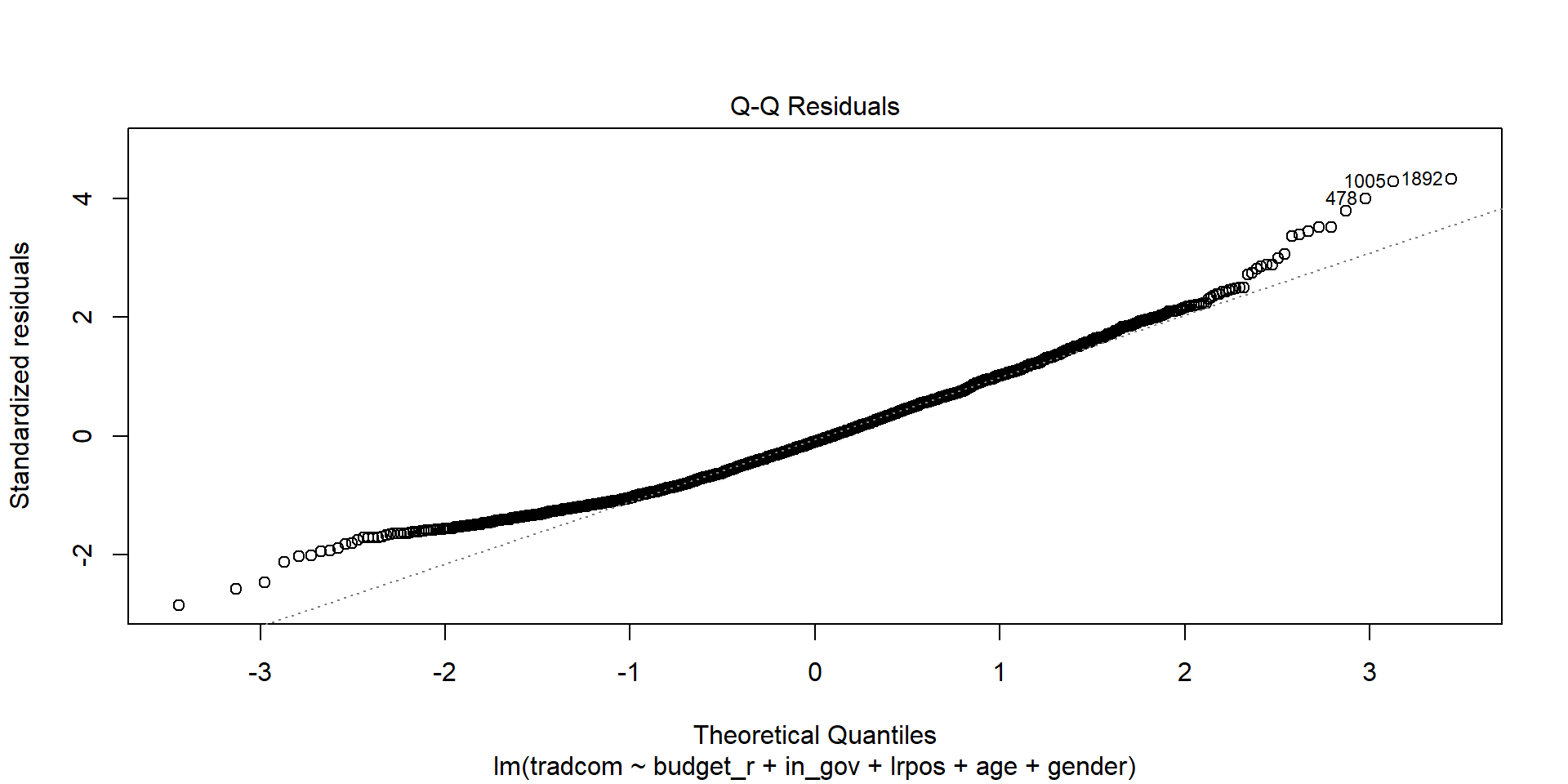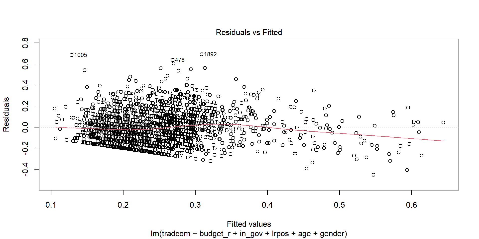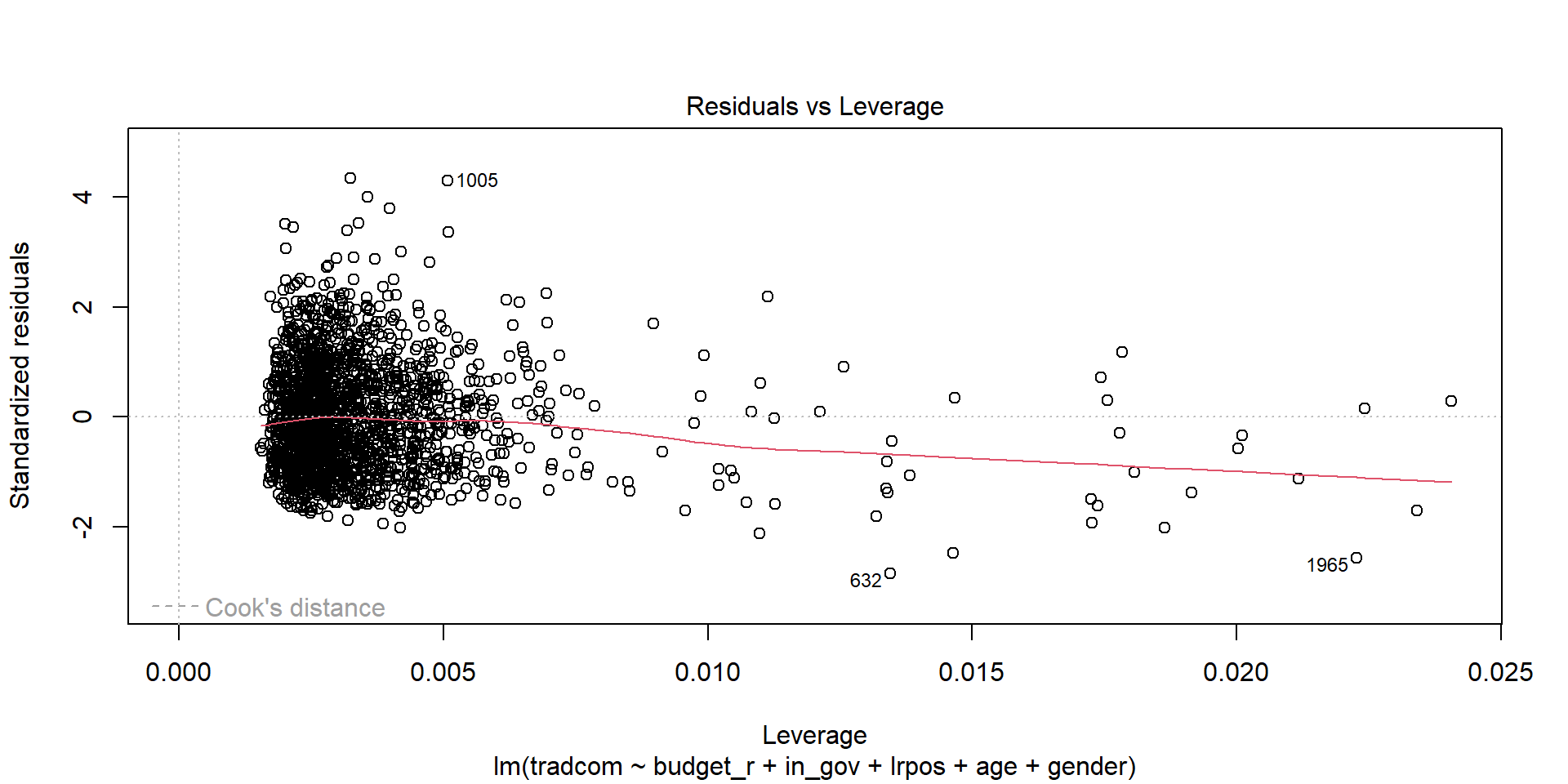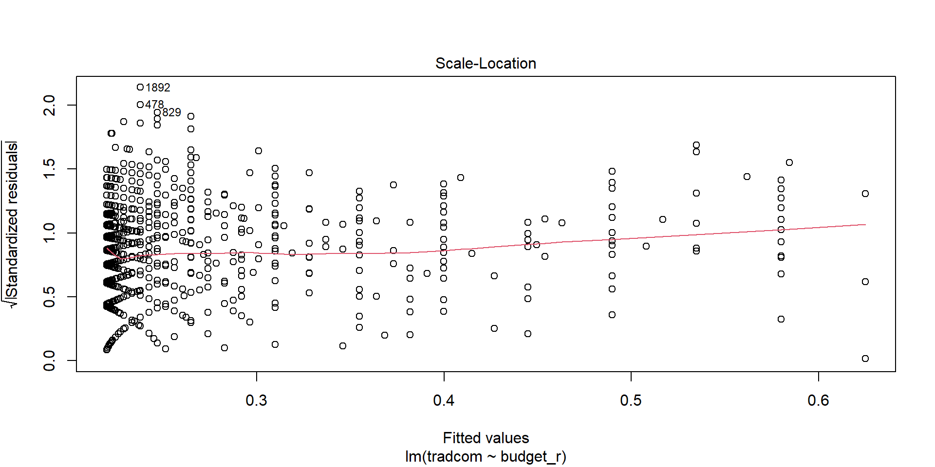 plot(lm(tradcom ~ budget_r, data=sel), 3)