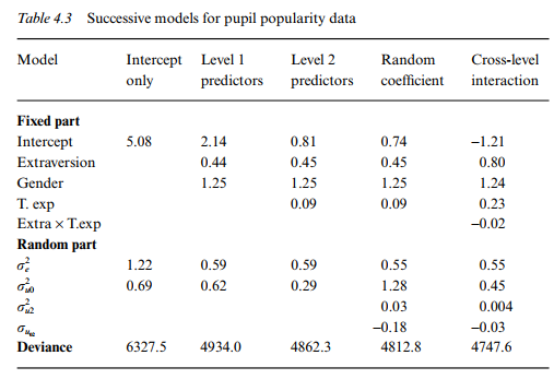 Hox (2010, pp.70) proposes to examine residual error variance in a sequence of models:
